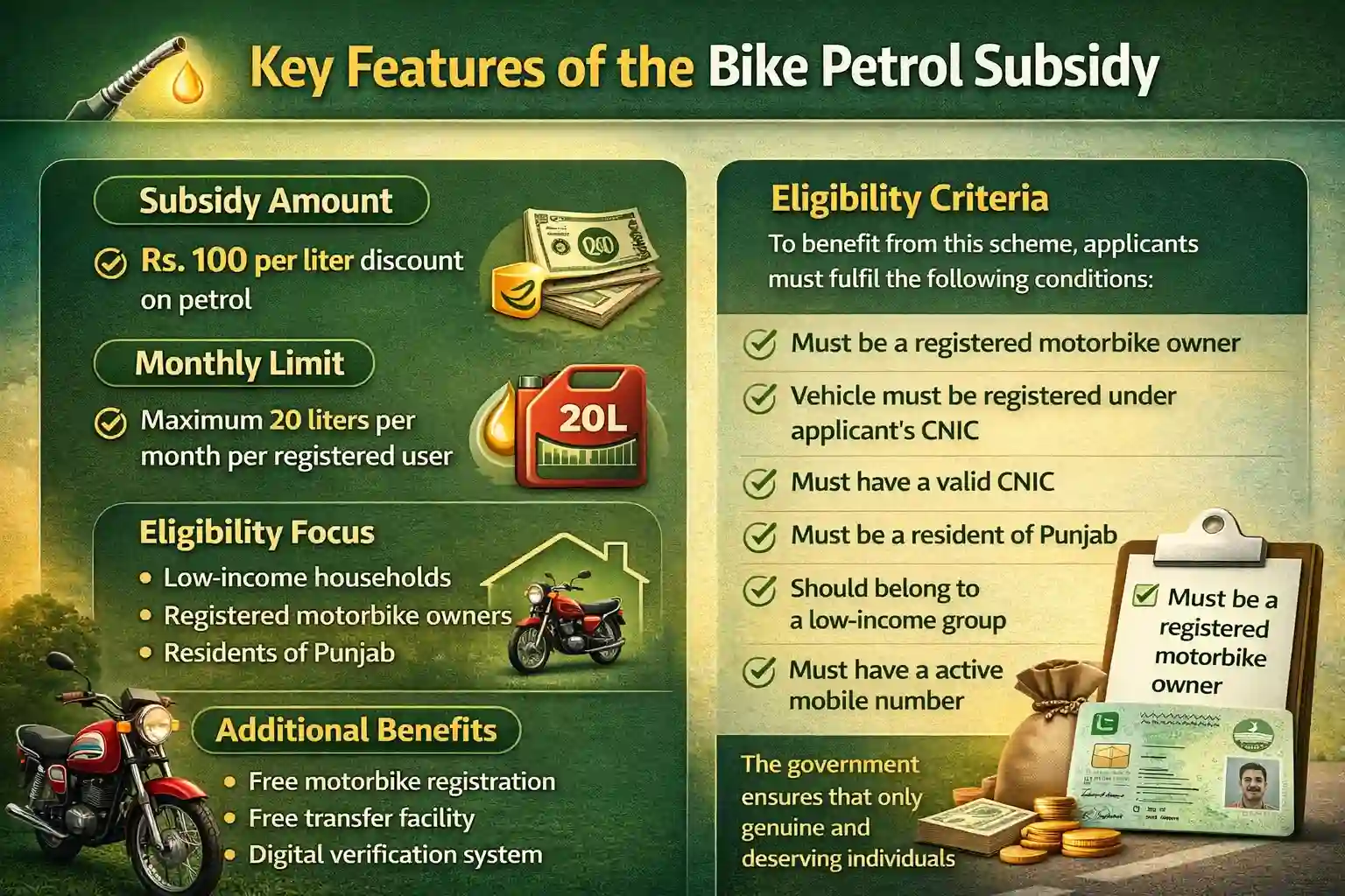 The Government of Punjab has introduced a revolutionary Bike Petrol Subsidy Program 2026 to support motorbike users facing rising fuel prices. This initiative aims to provide financial relief to low-income individuals by offering subsidized petrol at a discounted rate.